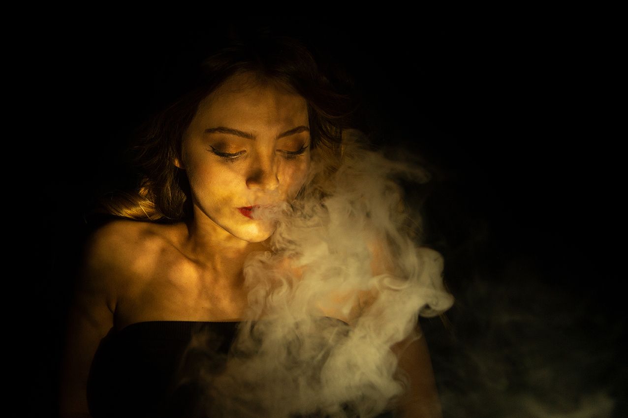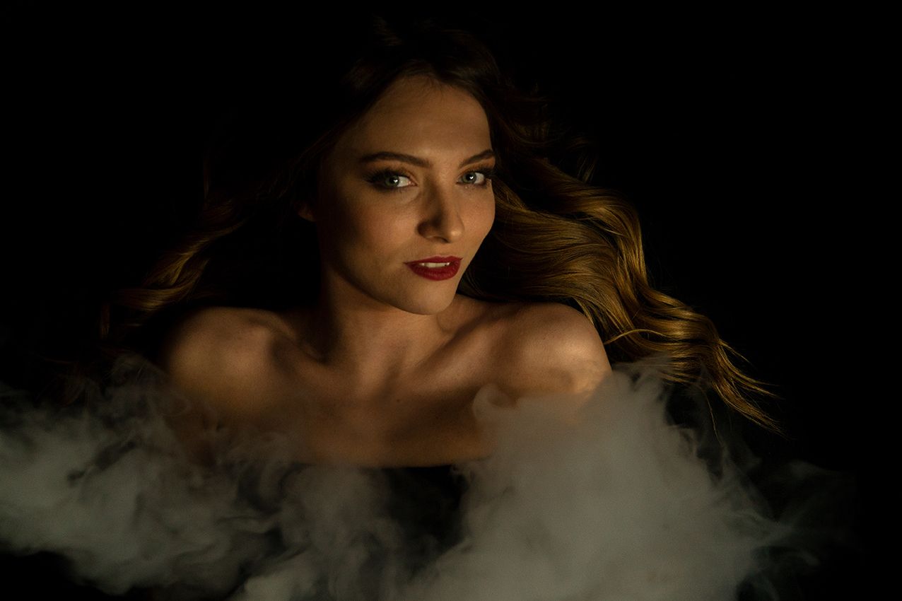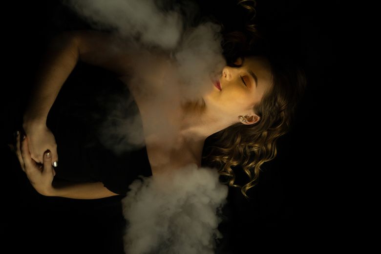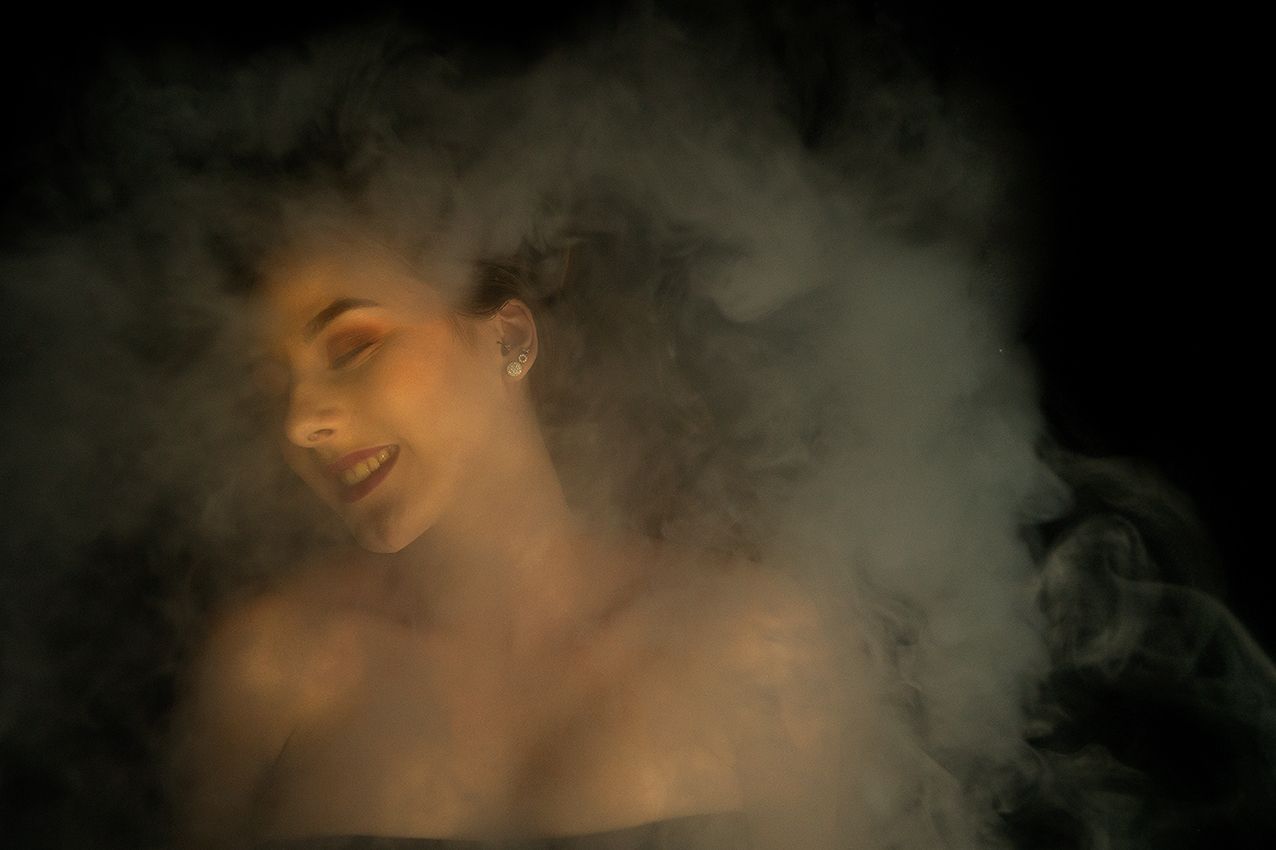 Rauch in der Fotografie ist eher unkontrollierbar und lässt eine neue Interpretation des Bildes zu. Bei diesem Experiment bildete sich beispielsweise eine Decke aus Rauch, ein anderes Mal bekam das Fotomodel Engelsflügel verliehen. Interessant ist auch der Schatten des Rauches, der bei dem Zusammenspiel mit Licht zu beobachten ist. Manchmal verschwindet das Model schon fast in dem Nebel und das Foto wirkt somit räumlicher.