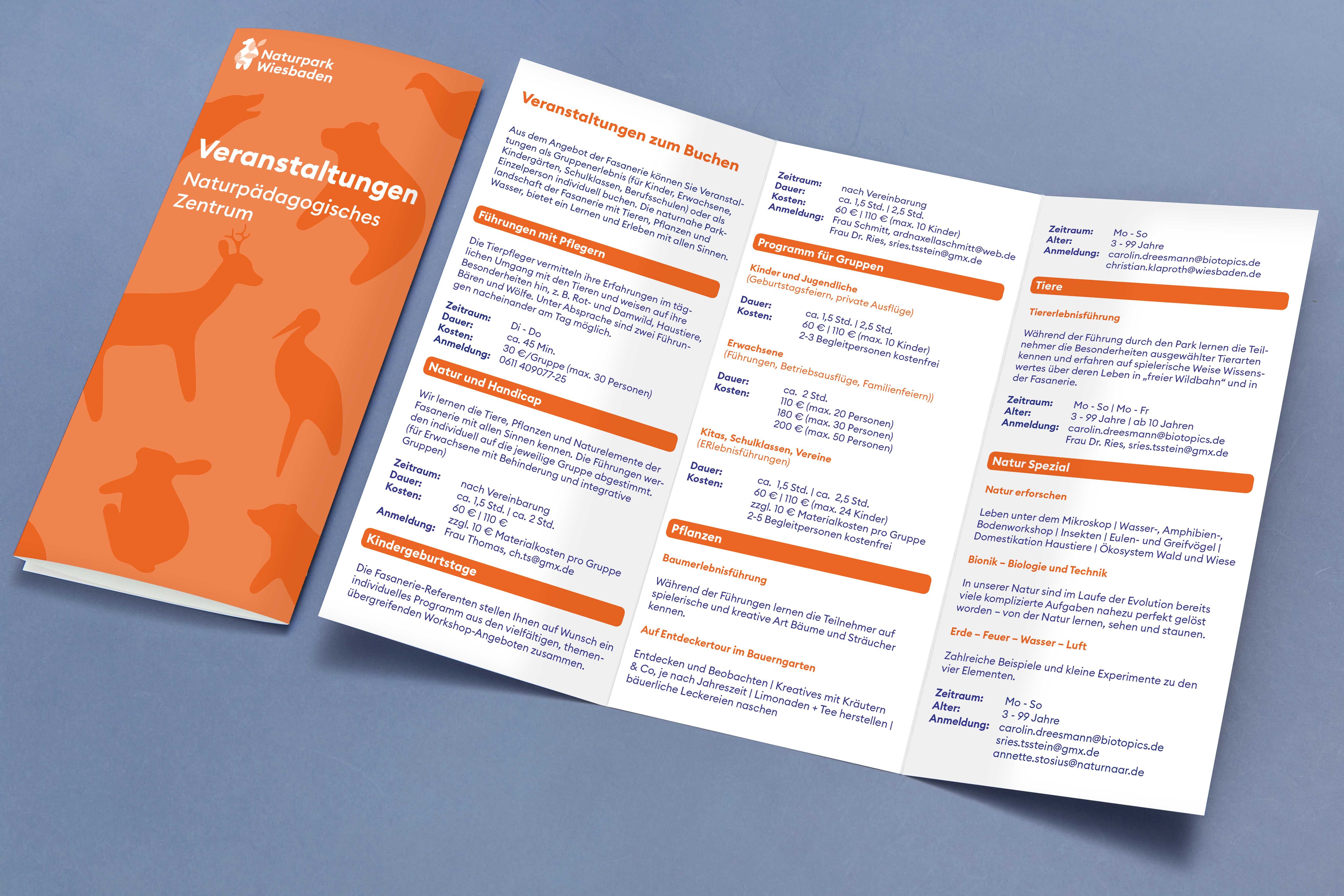 Im Folgenden befindet sich ein Rebranding der Fasanerie Wiesbaden. Ziel der Umgestaltung wurde, den Tier- und Pflanzenpark für die junge Zielgruppe interessanter und nahbarer zu gestalten, weshalb der Fokus auf eine lebendige und moderne Darstellung gelegt wurde. Um sowohl die Tier- als auch die Pflanzenwelt im Logo präsenter darzustellen, wurde der Name zu "Naturpark Wiesbaden" umgeändert und beide Bereiche wurden in die Bildmarke mit eingebracht.