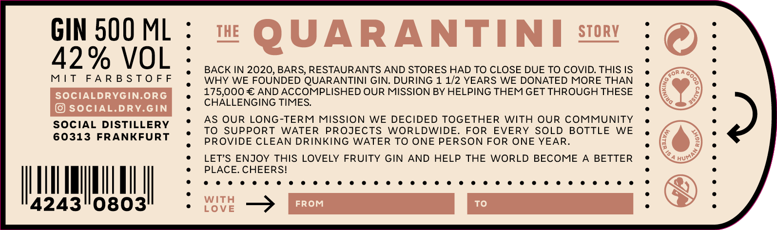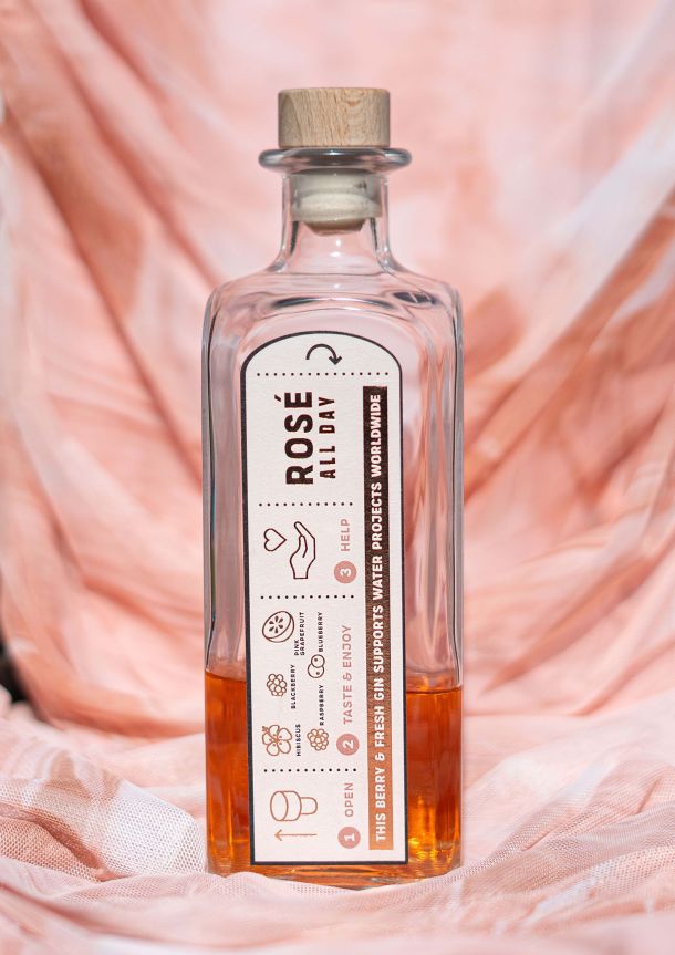 Dieser Gin ist der erste soziale Gin, bei dem pro verkaufter Flasche eine Person in einem Entwicklungsland mit sauberem Trinkwasser für ein Jahr versorgt wird.